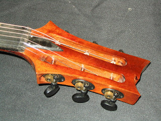 Finished this guitar today. It was something I'd wanted to try for quite some time but other ideas seemed to always take a higher priority. I is an acoustic guitar with a single cut away to reach higher fingerboard frets. The back and sides and neck are quilted sapele mahogany, the fingerboard and bridge are ebony. The Celtic knot rosette is maple, and the bindings/trim is padauk. Inlay is MOP. This one took a while to make because it is so hot in the garage where I work (a large fan isn't enough for the heat during a Texas summer). The tuner installation was interesting as I had to recess the machines into the curve of the peg head.